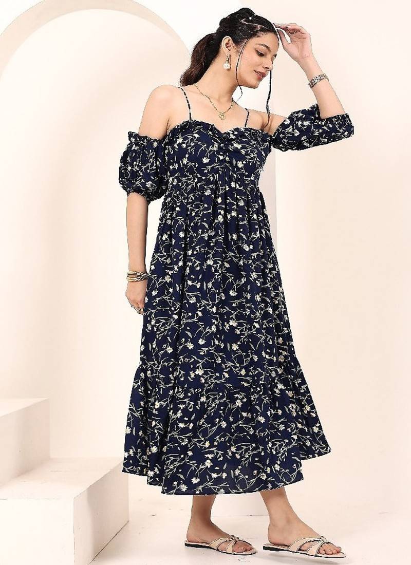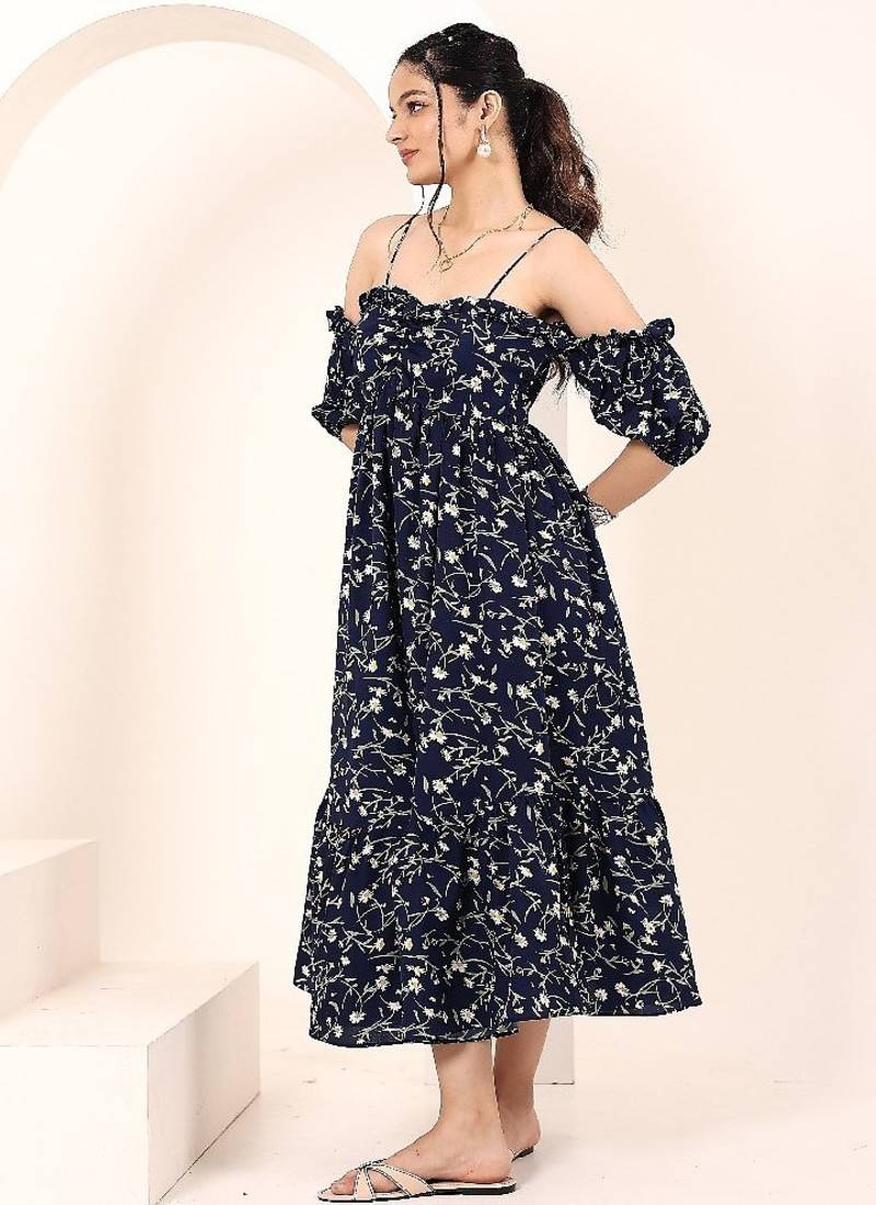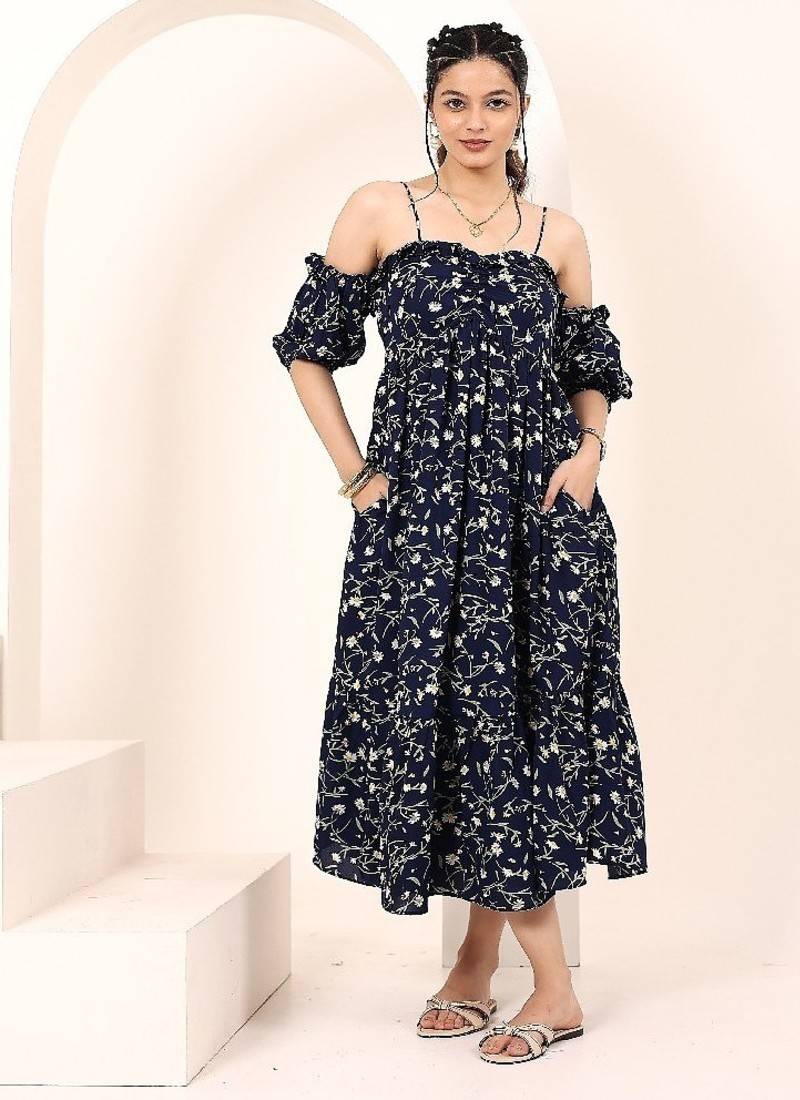 Product Name | Navy Blue Tropical Print Angrakha Style Cotton Kurta Top | |