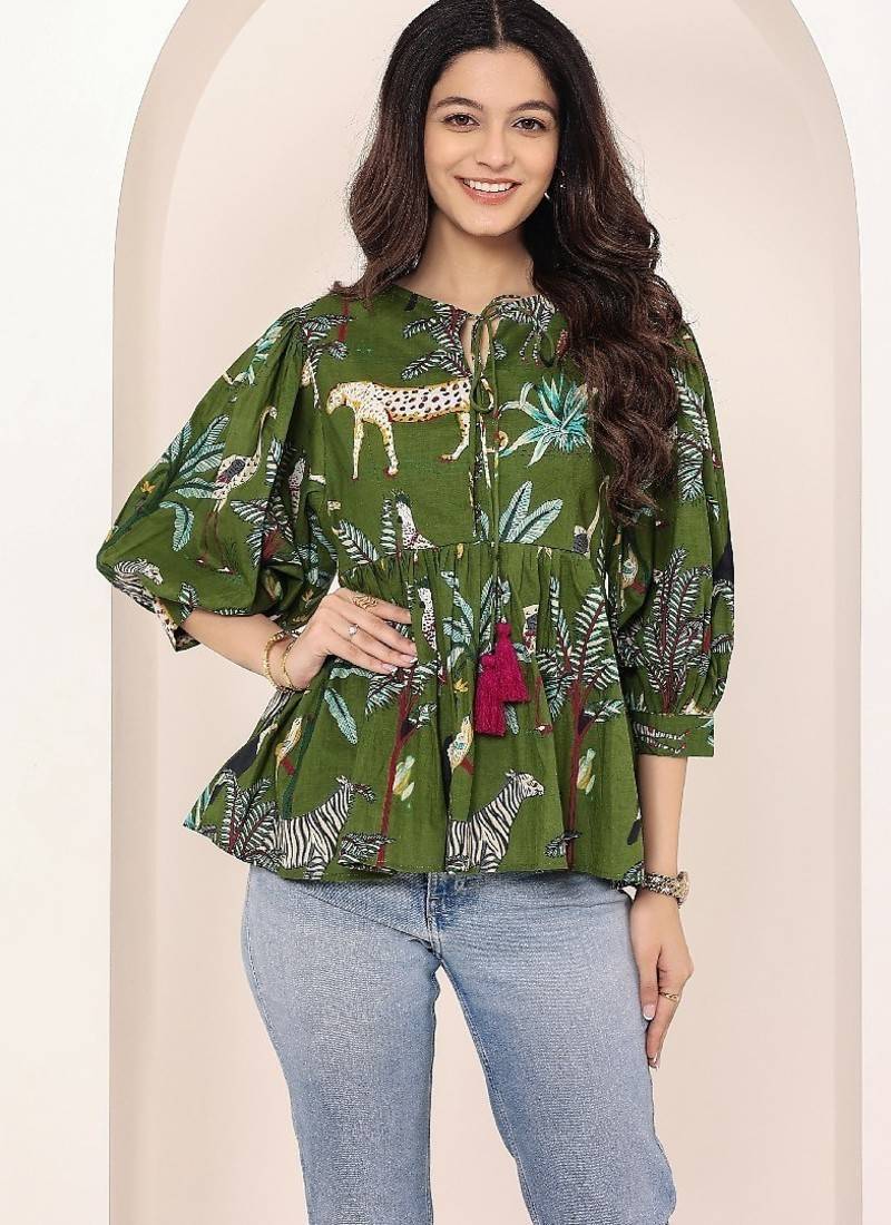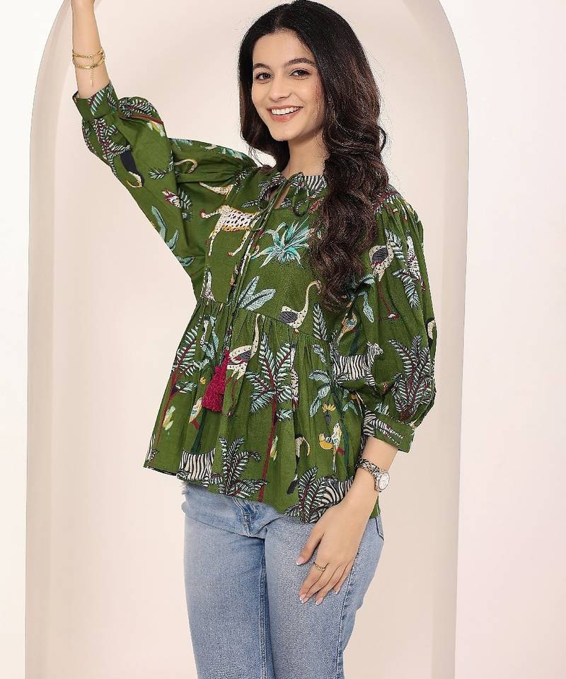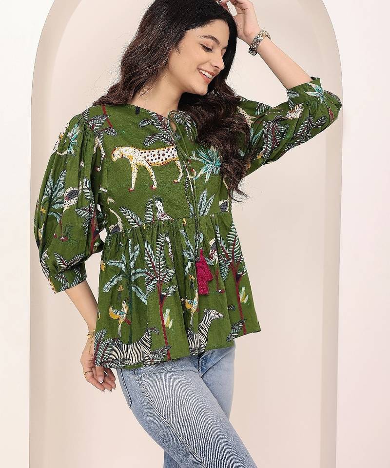Product Name | Navy Blue Tropical Print Angrakha Style Cotton Kurta Top | |