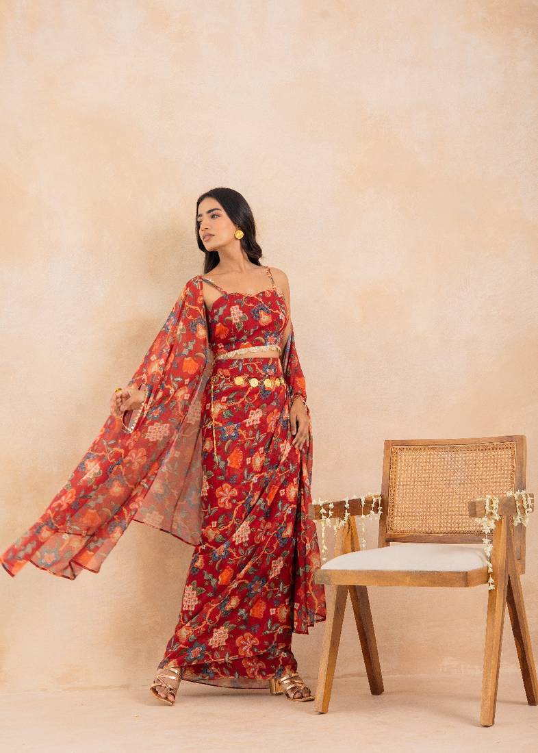 Product Name | Red Floral Printed Drape Skirt Set | |