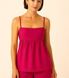 Product Name | Women Hot Pink Cotton Linen Peplum Strap Top With Elastic Waist Shorts Co Ord Set | |