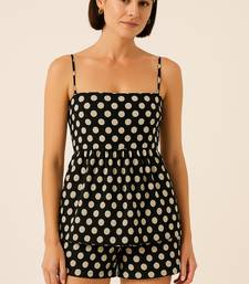Product Name | Women Polka Dot Cotton Linen Peplum Strap Top With Elastic Waist Shorts Co Ord Set | |