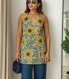 Product Description | Add A Touch Of Modern Elegance To Your Ethnic Wardrobe With This 100% Cotton Printed Halter Neck Short Kurti. Designed For Comfort And Style, It Features A Halter Neck Tie Up, Back Elastic For Ease, Side Slits, And A Flattering 26" Length. Ideal For Casual Wear, College, Summer Outings, Or Styling As A Fusion Look. 🔹 Product Details: