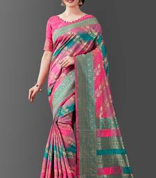 Bollywood pink self design pure art silk gift saree with unstitched blouse