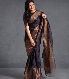 Designer copper woven pure art silk gift saree with unstitched blouse