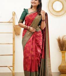 designer red woven silk cotton bollywood saree with unstitched blouse