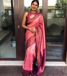 Elegance pink banarasi art silk blend light weight saree with unstitched blouse