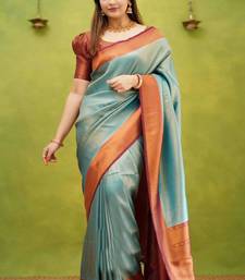Jacquard sea green self design pure art silk gift saree with unstitched blouse