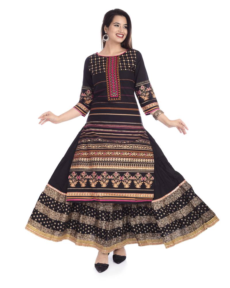 | Product Name | Black Embroidered Cotton Kurtas And Kurtis Set With Skirt | |