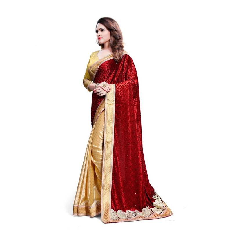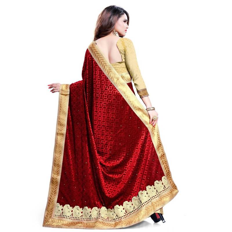 | Product Name | Red Embroidered Velvet Saree With Blouse | |