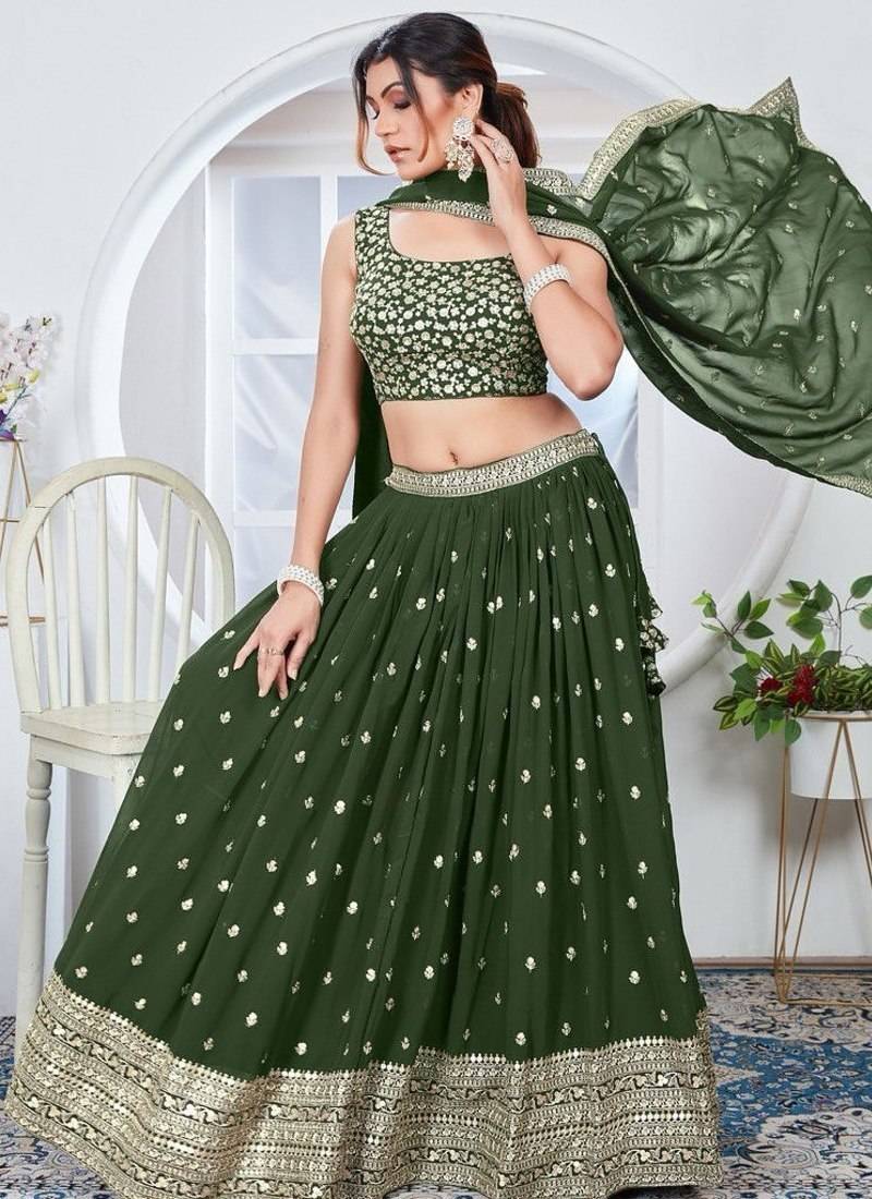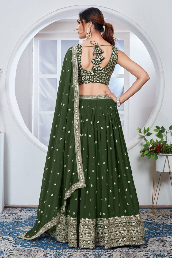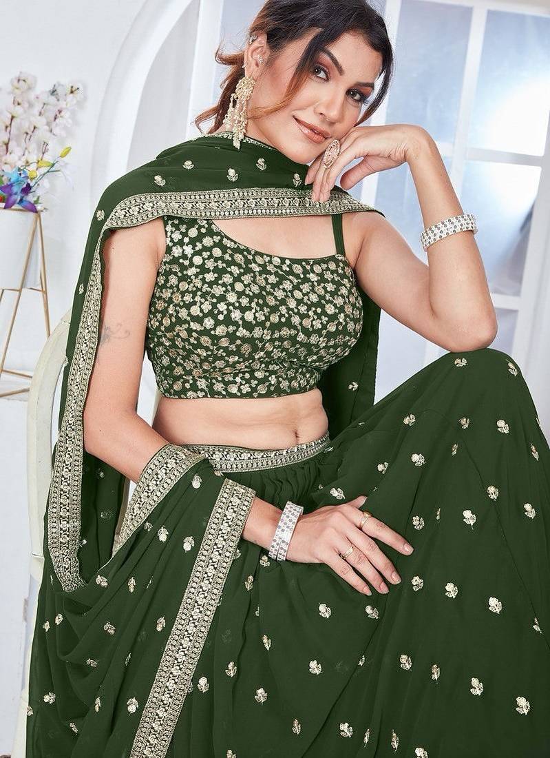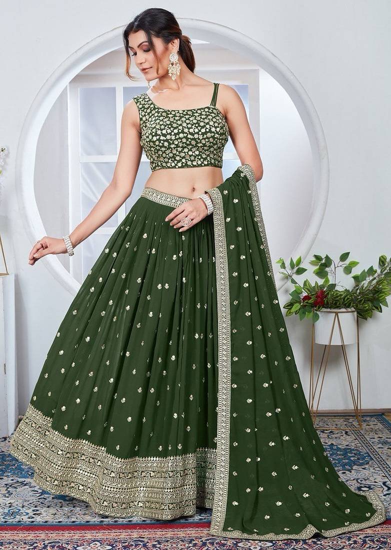 | Product Name | Bottle Green Faux Georgette Lehenga Choli With Thread & Sequins Embroidery | |