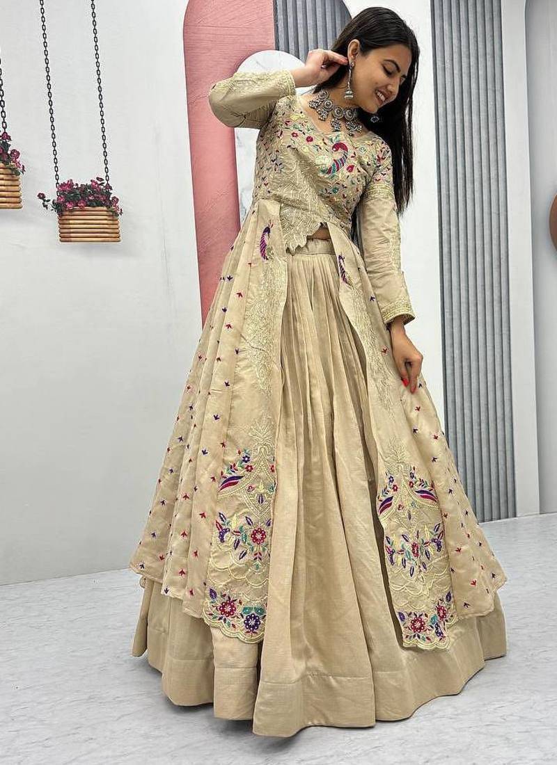 | Product Name | Cream Vichitra Silk Heavy Thread Sequins Work Lehenga Set | |