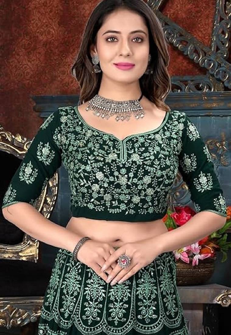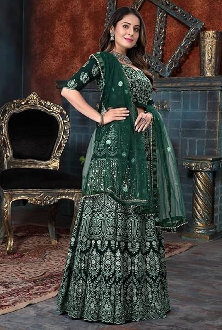 | Product Name | Elegant Dark Green Lehenga With Zari & Thread Embroidery Design | |