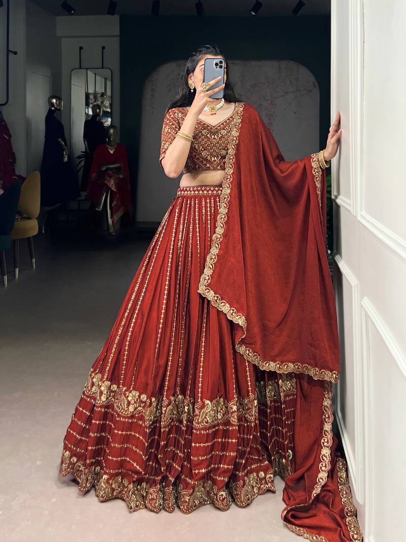 Partywear rangoli crush lehenga choli with sequins & thread embroidery