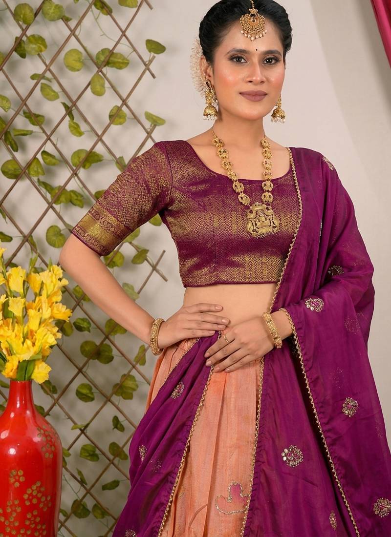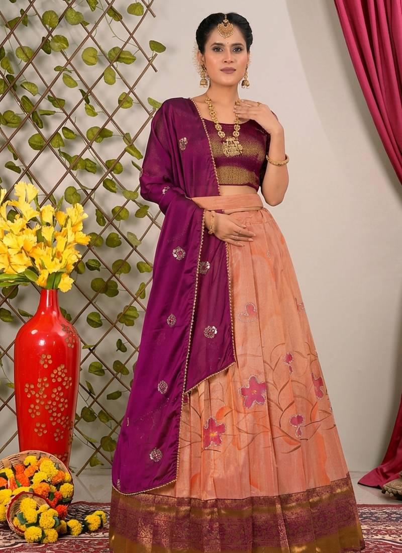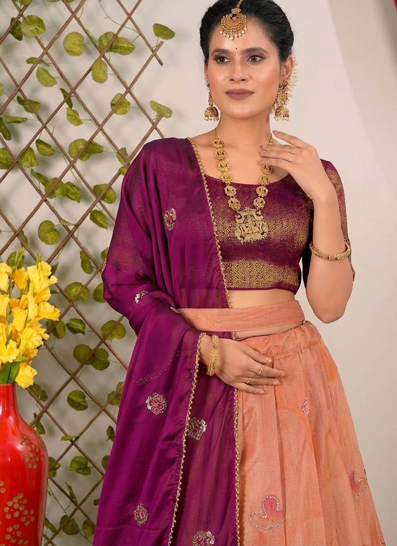 | Product Name | Peach & Wine Banarasi Festive Lehenga Choli Set | |