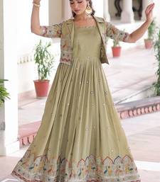 Perrot color vichitra silk embroidered gown with sequins zari work, standard stitch partywear koti set stitched