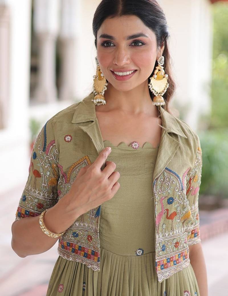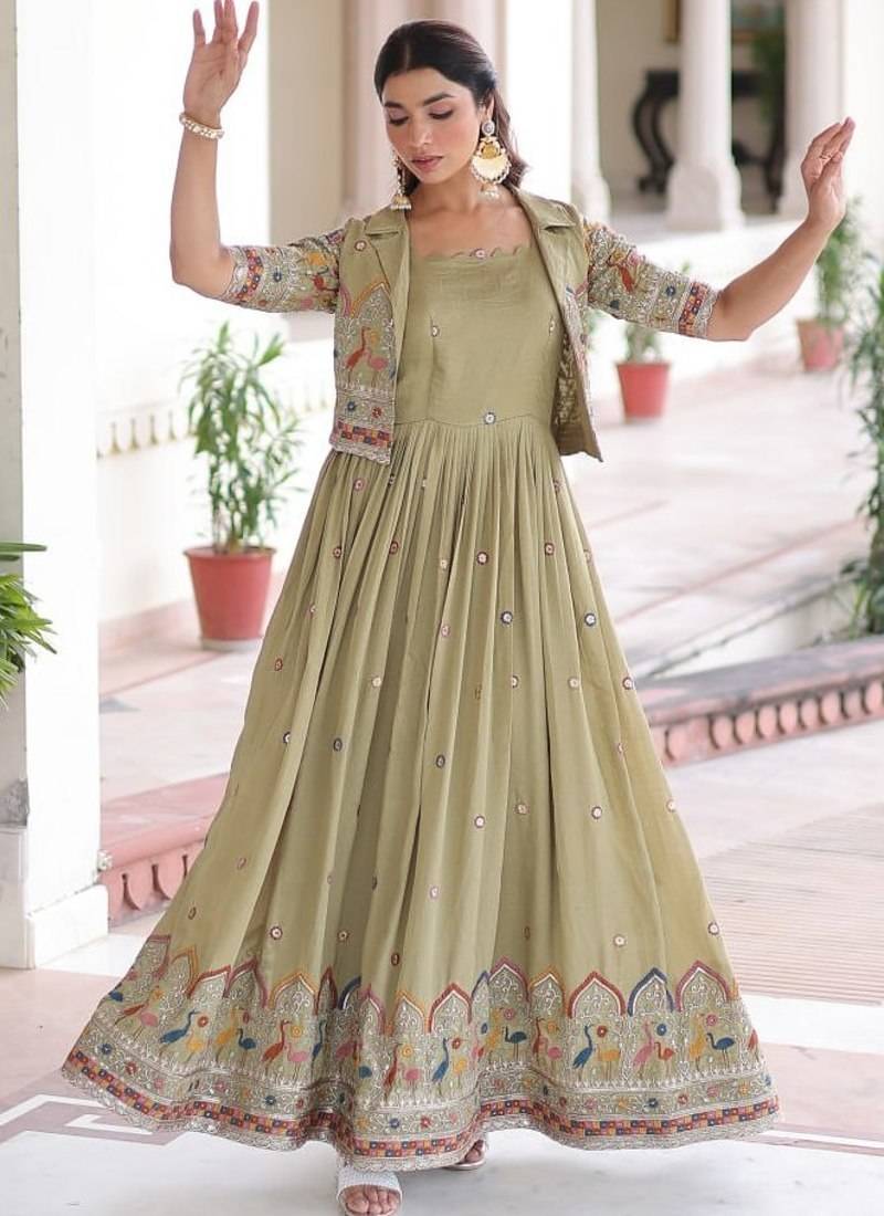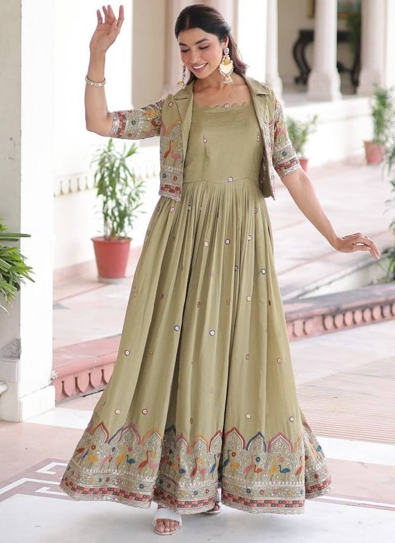 | Product Name | Perrot Color Vichitra Silk Embroidered Gown With Sequins Zari Work, Standard Stitch Partywear Koti Set | |