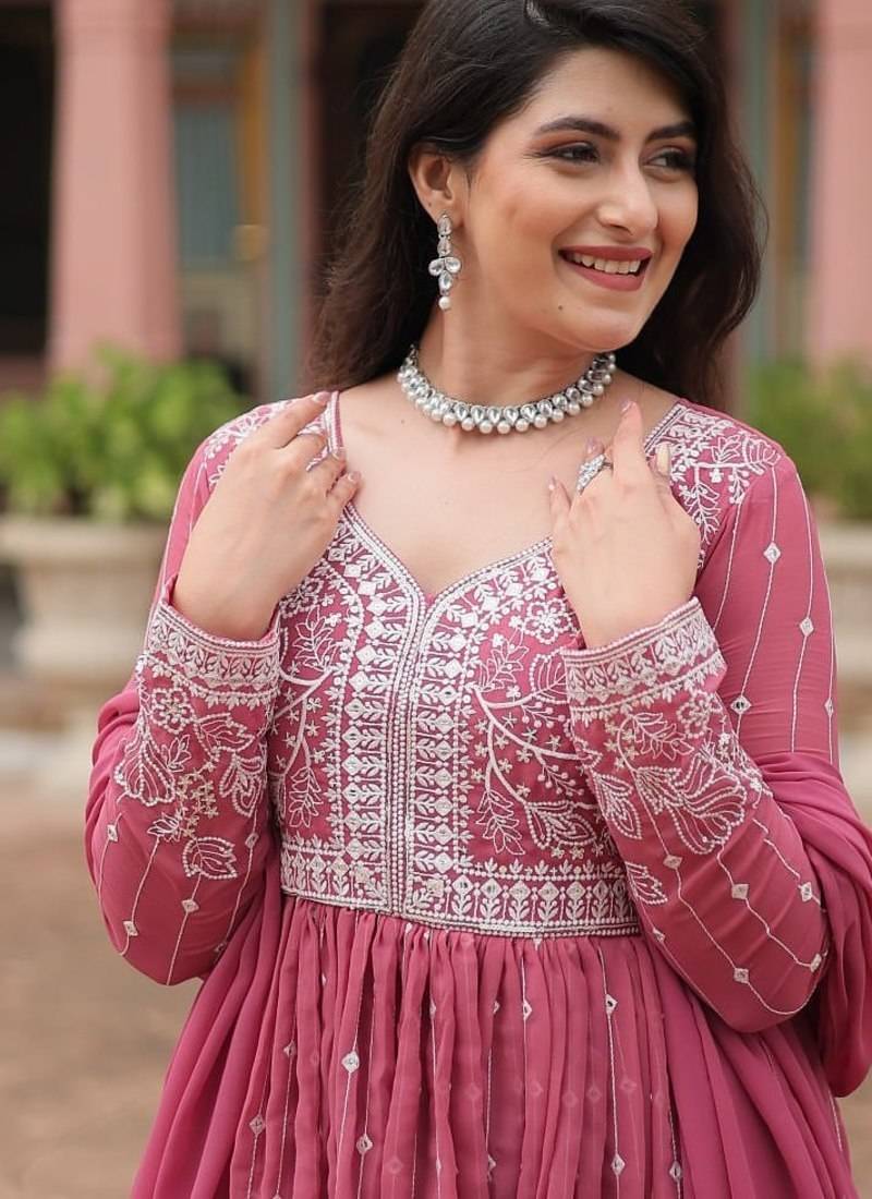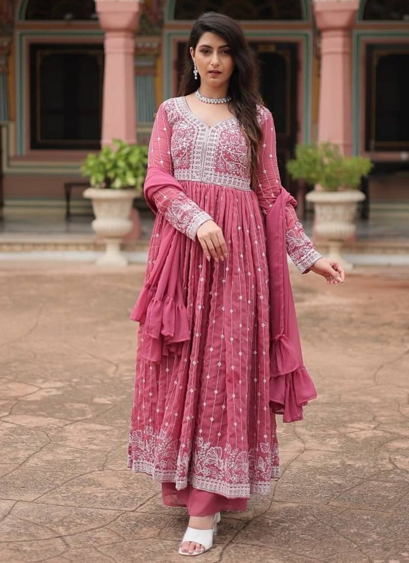 | Product Name | Pink Faux Georgette Embroidered Anarkali Suit Set With Sequins Work | |