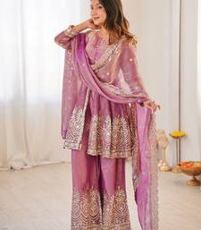 | Product Name | Pink Two Tone Fandy Silk Heavy Embroidery Sequins & Mirror Work Fully Stitched Kurti Palazzo Set | |