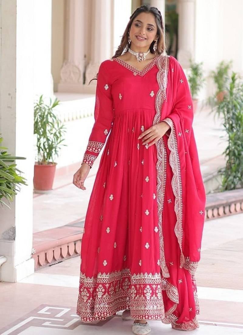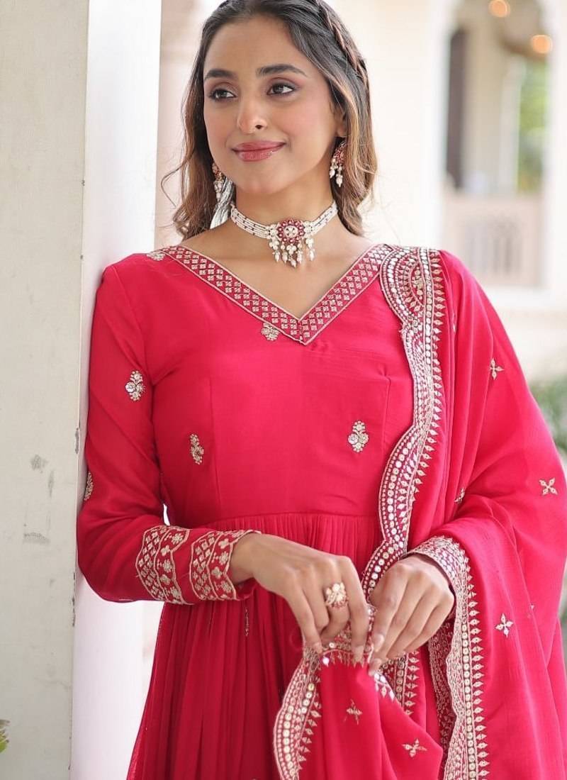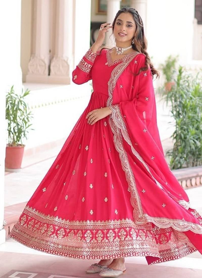 | Product Name | Pink Vichitra Silk Sequins & Zari Embroidered Stitched Gown With Cut Work Dupatta | Women Designer Ethnic Wear | |