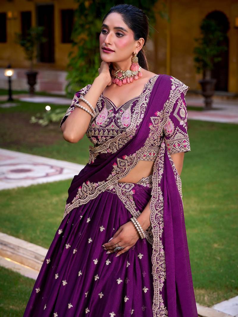 Purple embroidered silk lehenga choli with dupatta & blouse – heavy zari work traditional wedding wear