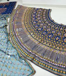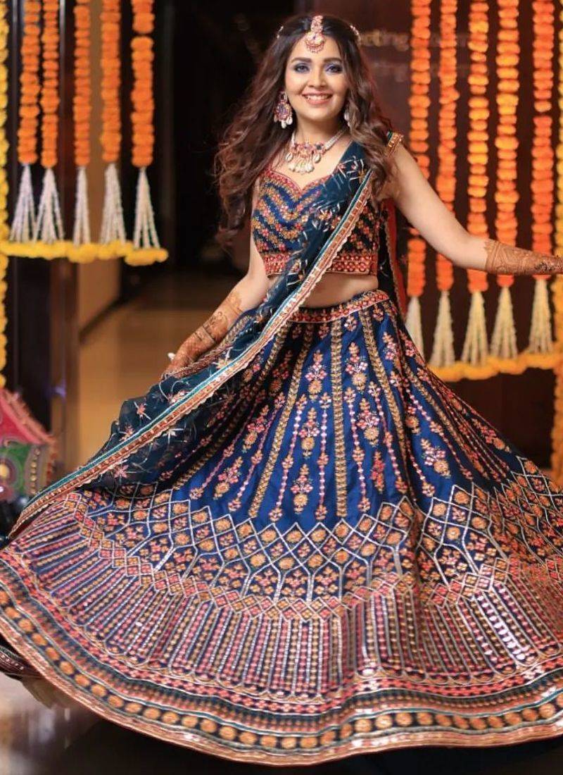 Wedding wear navy blue chinon lehenga with sequin & thread work