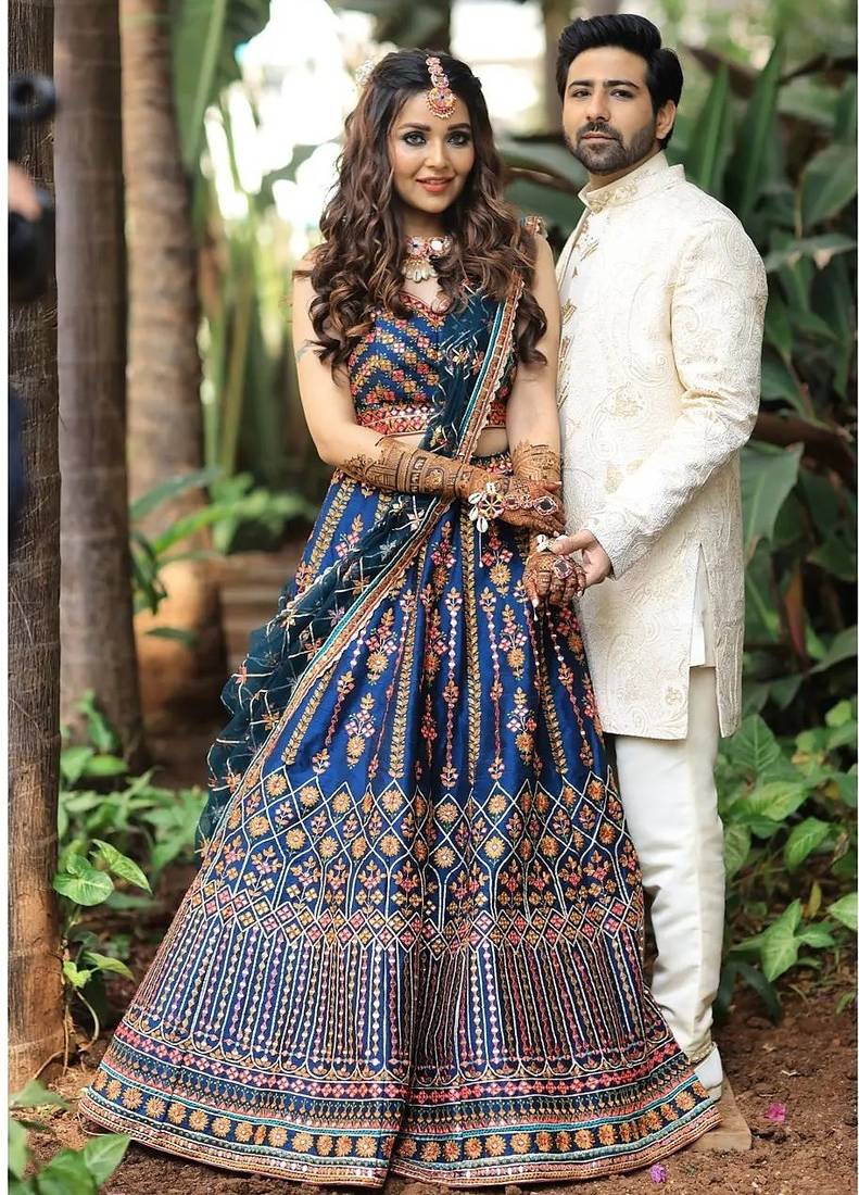 | Product Name | Wedding Wear Navy Blue Chinon Lehenga With Sequin & Thread Work | |