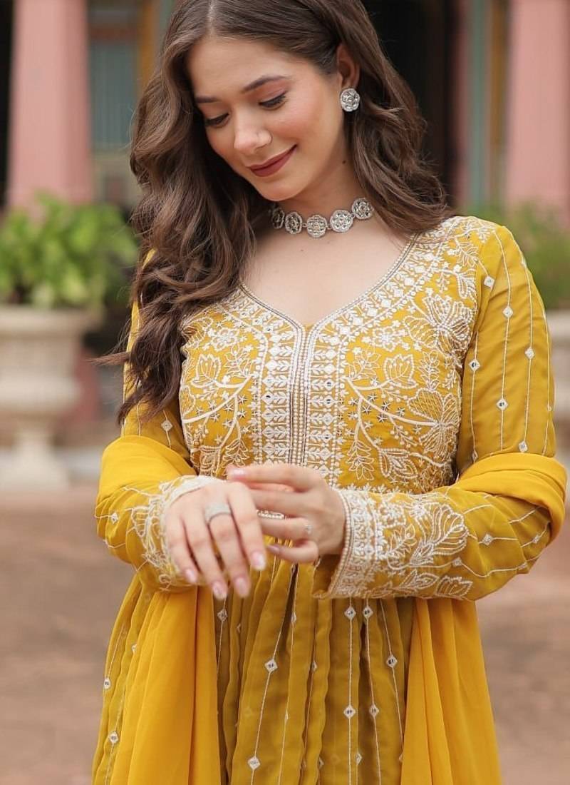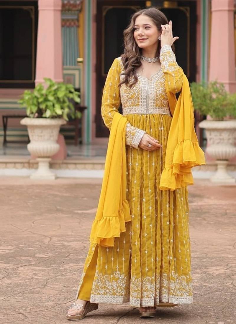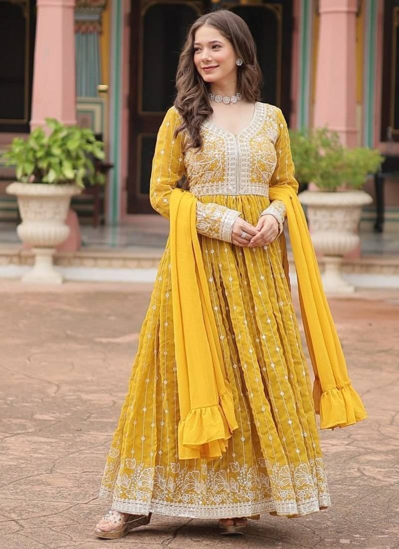 | Product Name | Yellow Faux Georgette Embroidered Anarkali Suit Set With Sequins Work | |