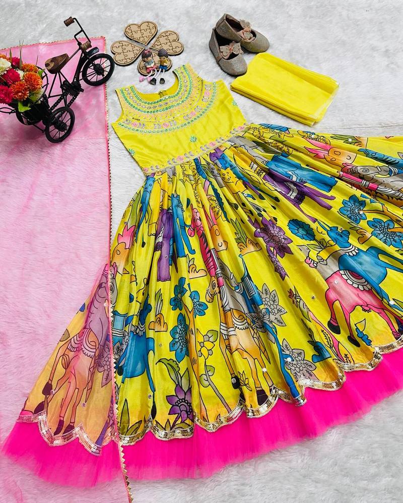 | Product Name | Yellow Heavy Chinon Embroidery & Print Work Fully Stitched Gown For Girls | |