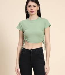 Green plain polyester crop-tops