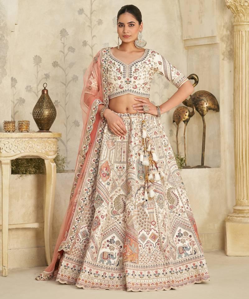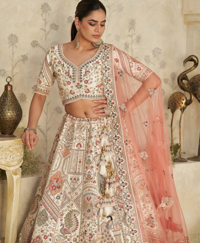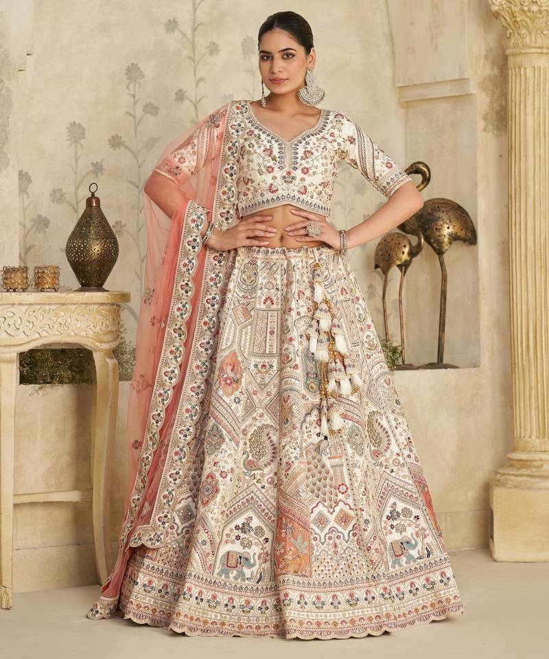 | Product Name | Intricately Embroidered Cream Zari Lehenga With Royal Motifs | |