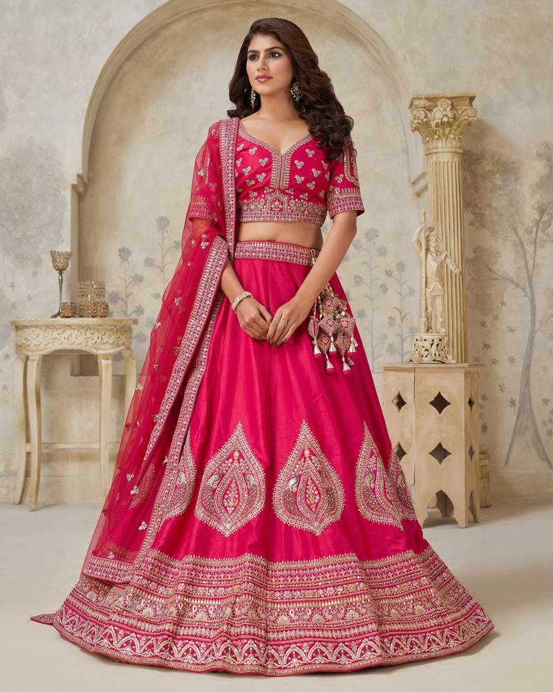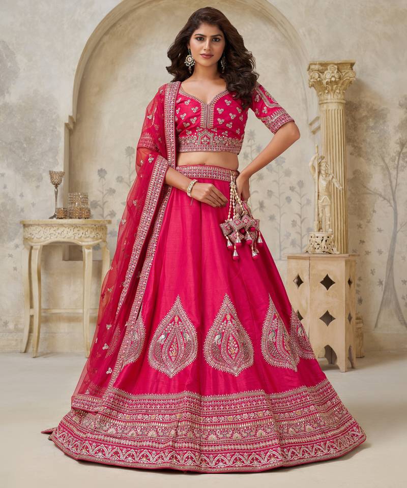 | Product Name | Pink Wedding Lehenga With Leaf Embroidery | |