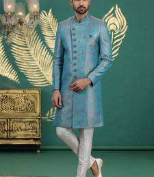 Banarasi jacquard blue wedding wear neck work readymade groom