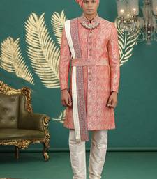 Banarasi jacquard peach wedding wear hand embroidery readymade groom
