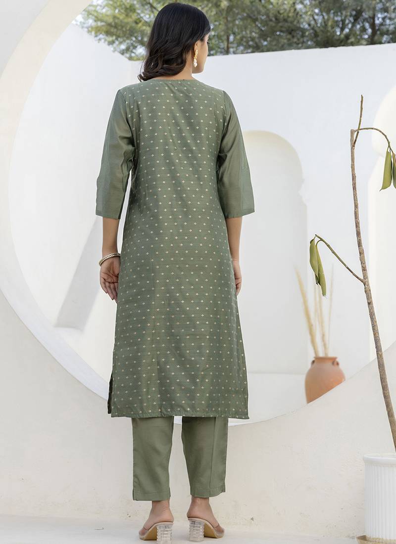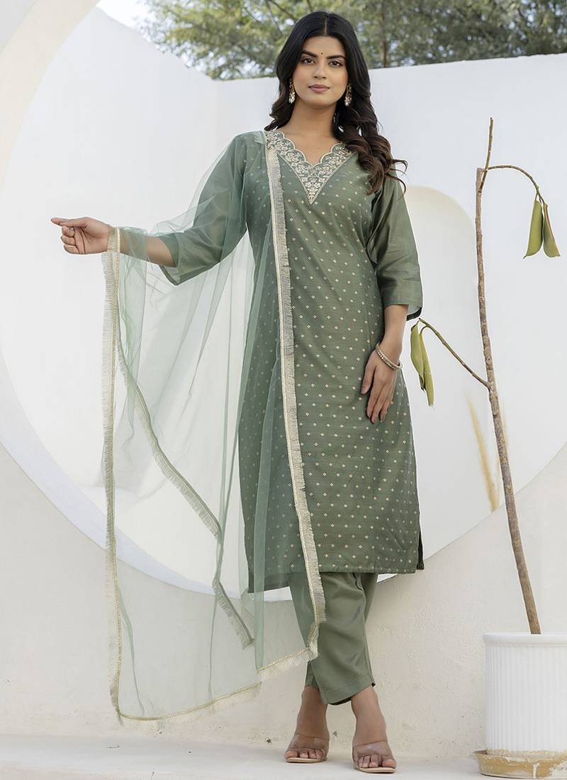 | Product Name | Chanderi Silk Mehendi Casual Wear Embroidery Work Kurta Set | |