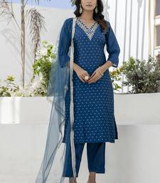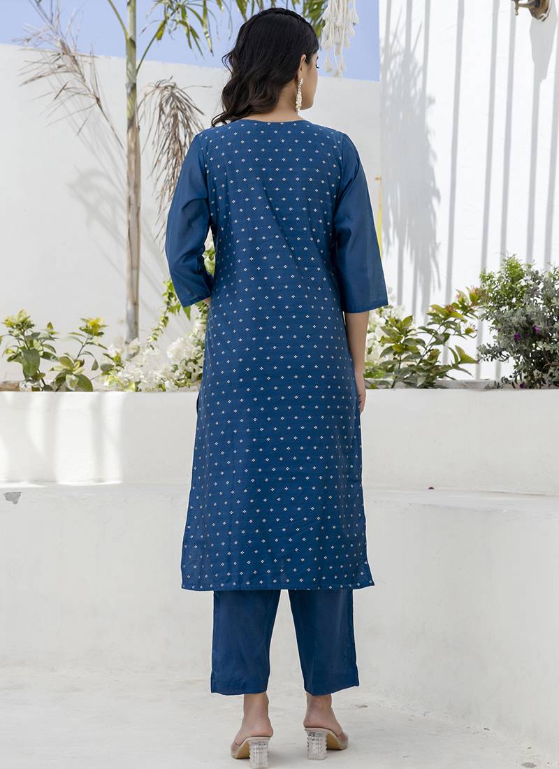 | Product Name | Chanderi Silk Navy Blue Casual Wear Embroidery Work Kurta Set | |