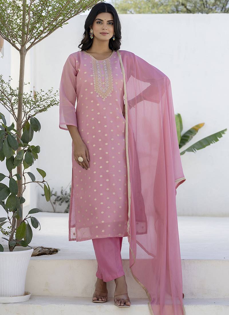 | Product Description | A Soft Pink Chanderi Silk Salwar Suit Decorated With Embroidery For A Charming Casual Look. The Breathable Fabric Ensures Day Long Comfort. Perfect For Light Ethnic Occasions. |