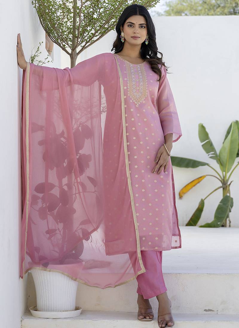 | Product Name | Chanderi Silk Pink Casual Wear Embroidery Work Kurta Set | |