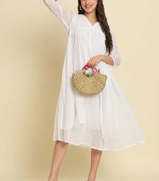 | Product Name | Chiffon White Casual Wear Schiffli Work Readymade Midi Dress | |