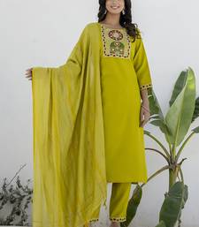 Product Name Cotton Blend Lime Green Casual Wear Embroidery Work Kurta Set