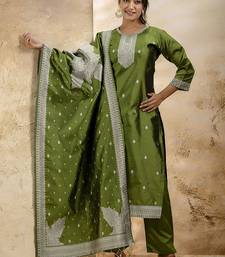 | Product Description | This Mehendi Cotton Blend Salwar Suit Features Weaving Work For A Traditional Look. Stylish, Breathable, And Perfect For Gatherings. |