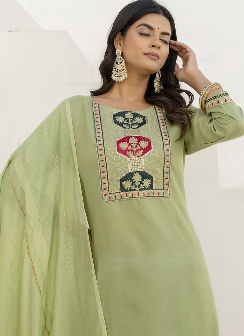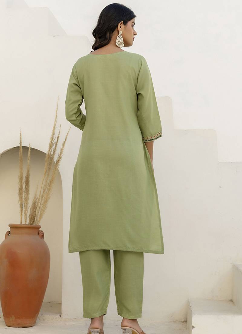 | Product Name | Cotton Blend Pista Casual Wear Embroidery Work Kurta Set | |