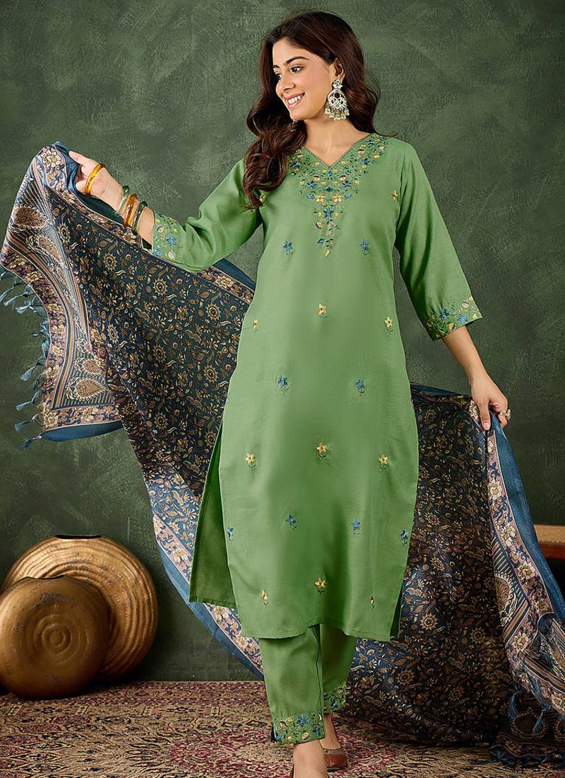 | Product Name | Cotton Blend Pista Casual Wear Embroidery Work Kurta Set | |