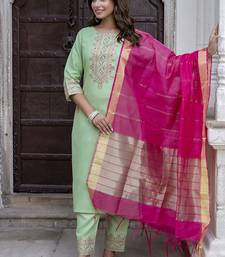| Product Description | Cotton Blend Pista Casual Wear Foil Print Work Readymade Salwar Suit |