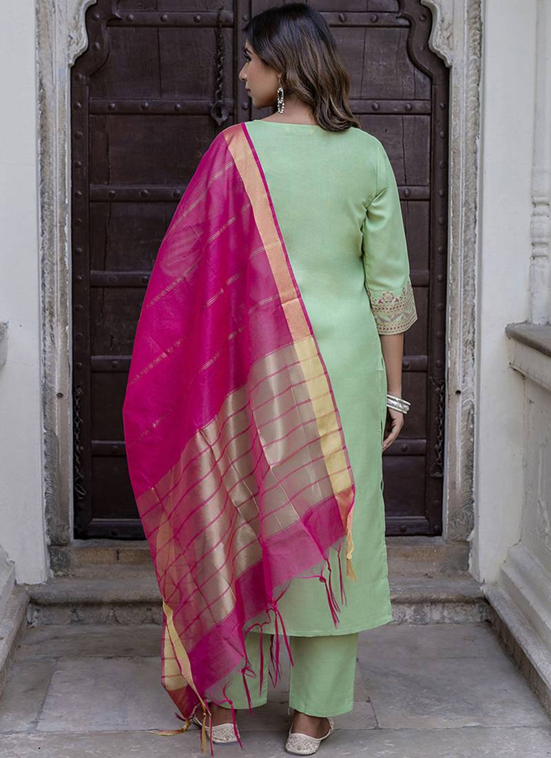 | Product Name | Cotton Blend Pista Casual Wear Foil Print Work Kurta Set | |