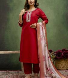 | Product Name | Cotton Blend Red Casual Wear Embroidery Work Kurta Set | |