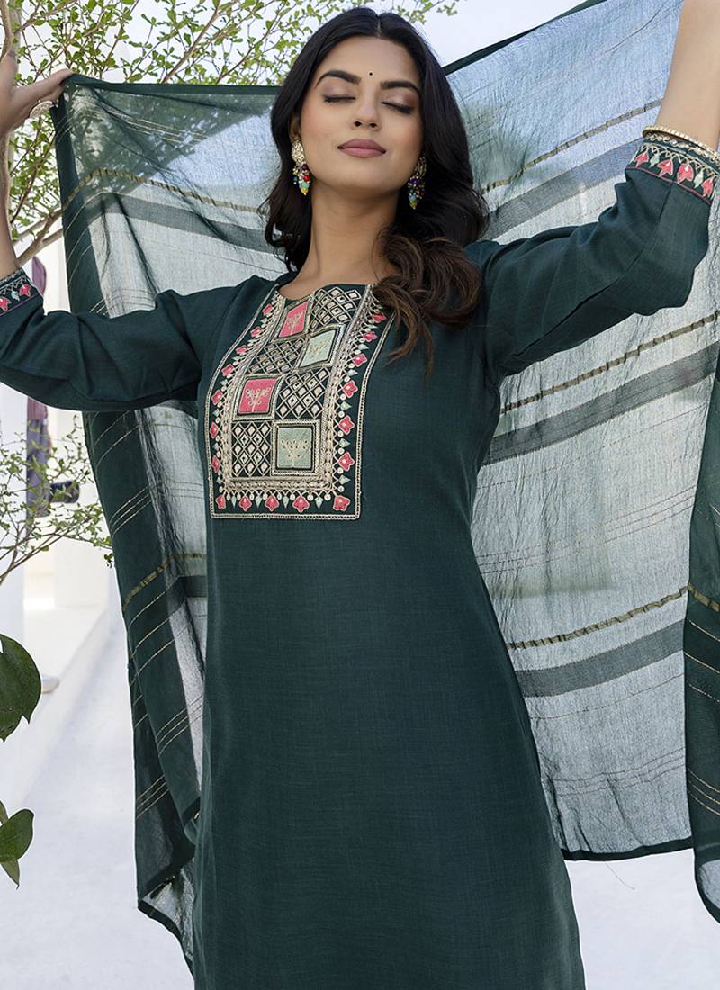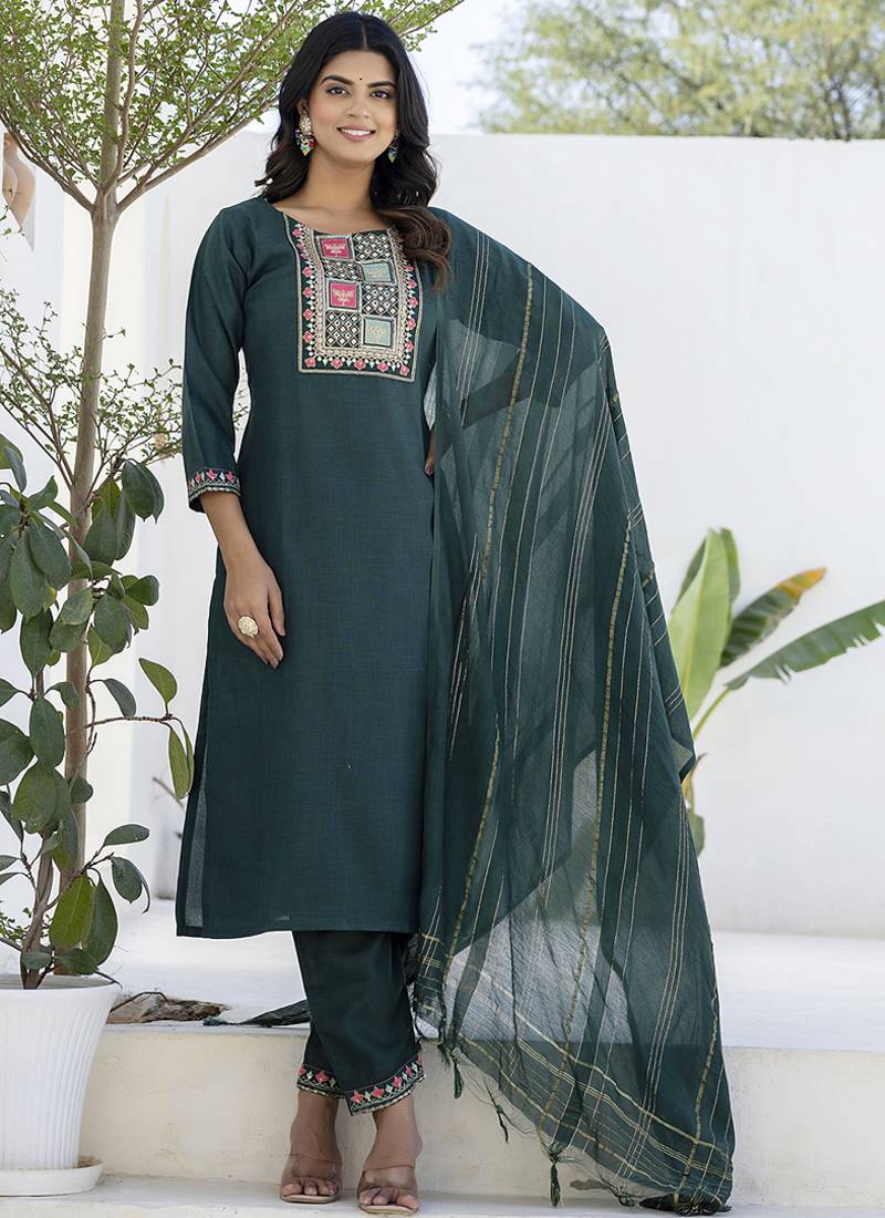 | Product Name | Cotton Blend Teal Casual Wear Embroidery Work Kurta Set | |