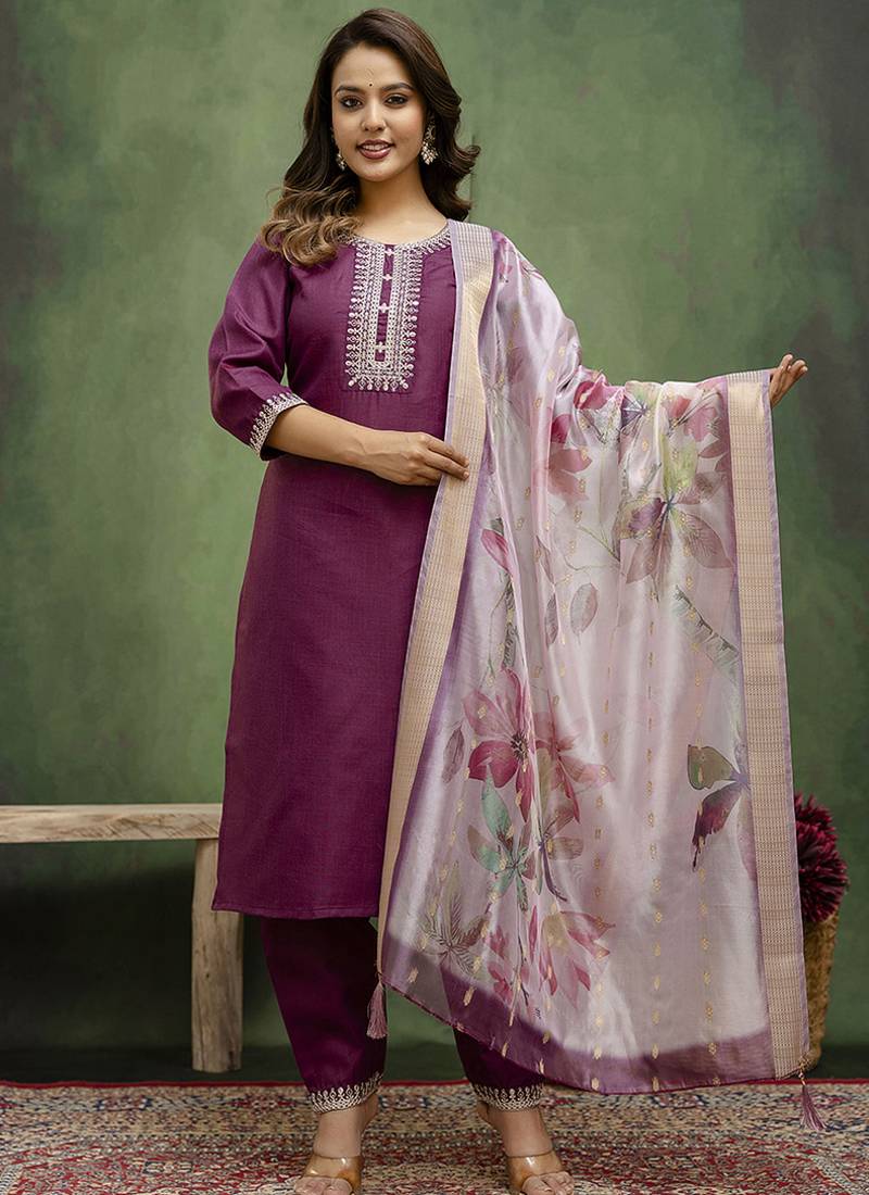| Product Description | Add A Touch Of Sophistication With This Wine Colored Cotton Blend Salwar Suit. Embellished With Embroidery, It’s A Perfect Fit For Casual Gatherings With An Elegant Ethnic Vibe. |