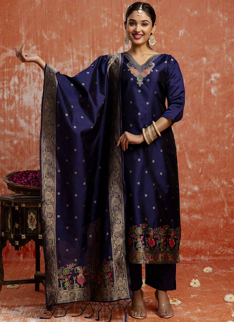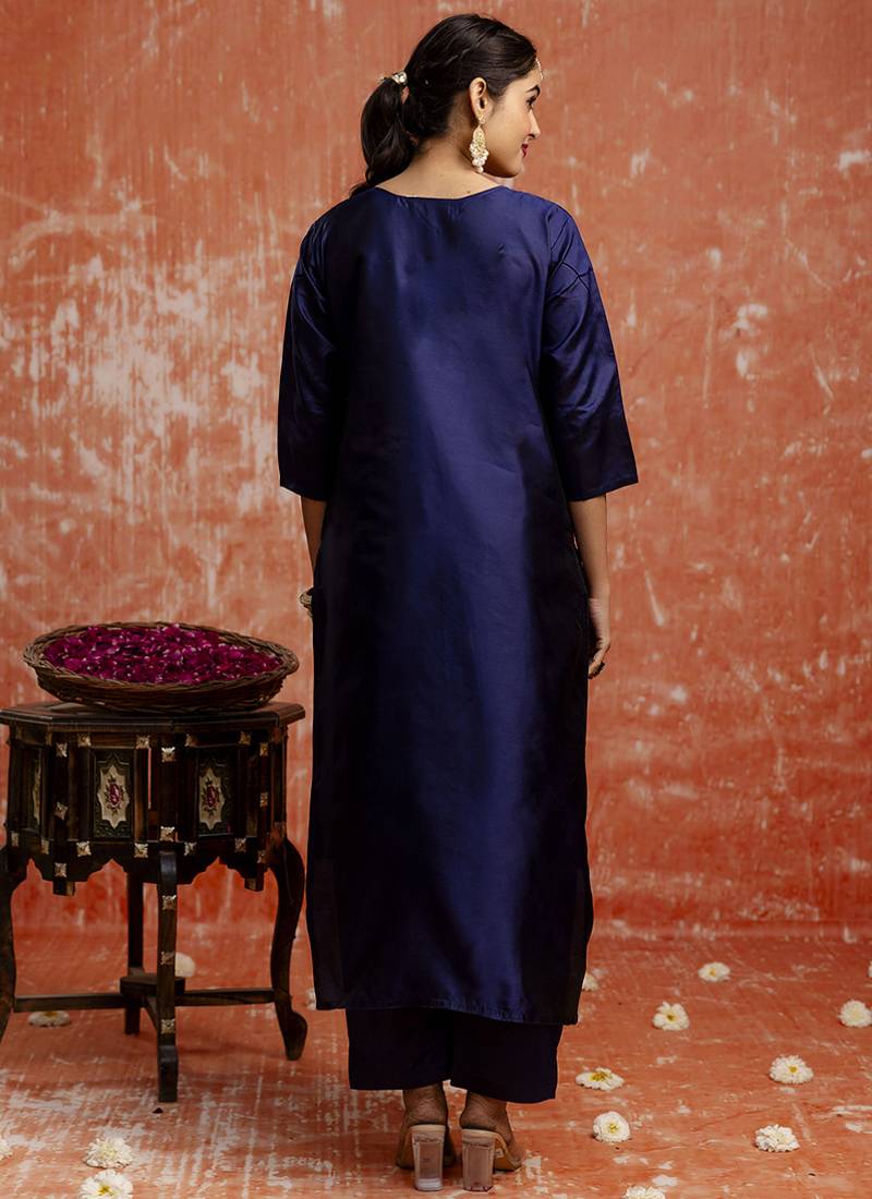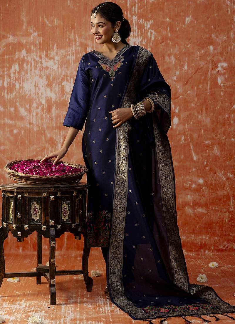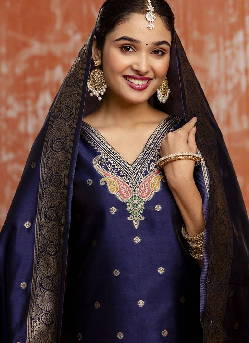 | Product Name | Cotton Silk Blend Navy Blue Party Wear Zari Work Kurta Set | |
