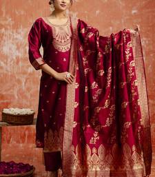 | Product Description | Beautifully Designed Red Cotton Silk Suit With Zari Craftsmanship, Ideal For Parties And Celebrations. |