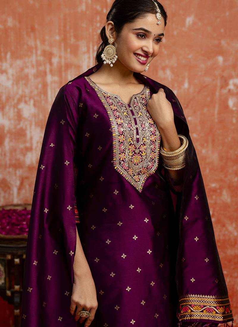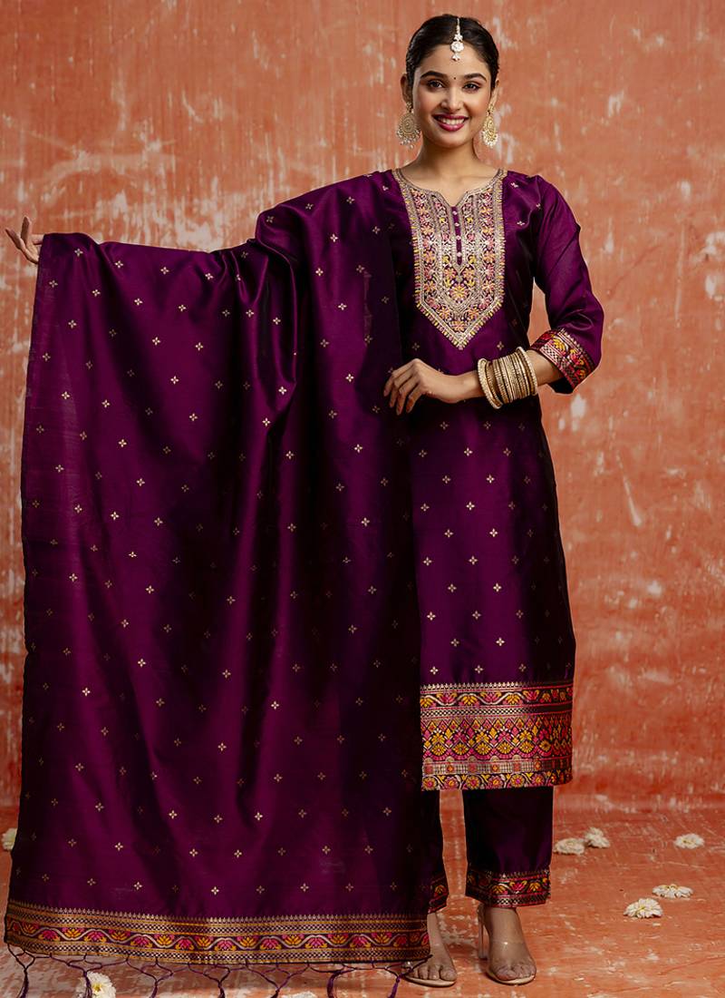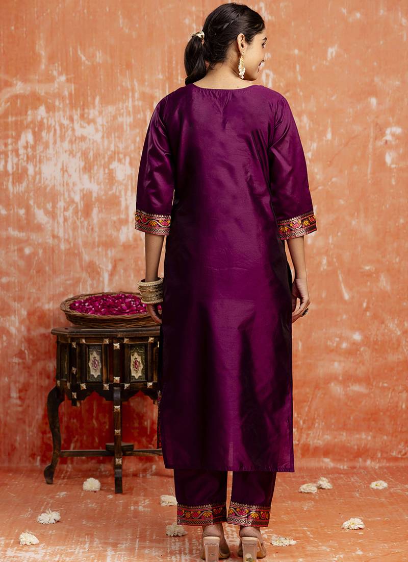 | Product Name | Cotton Silk Blend Wine Casual Wear Embroidery Work Kurta Set | |